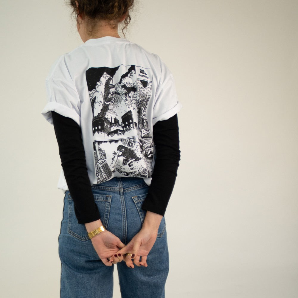 Made of 100% combed cotton, this relaxed fit, heavy weight, crew neck tee is comfortable and breathable. Godzilla mask and gloves not included, sadly.